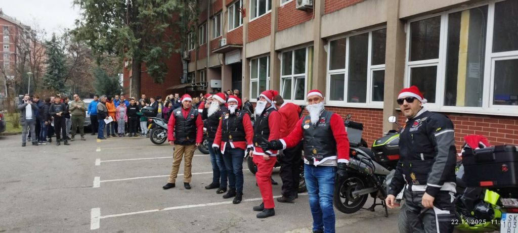 Облечени како дедмразовци, членови на мото клубот „Ноу лимит“ денеска донираа телевизор, постелнини и статичен велосипед наменети за учениците во Државното средно училиште за рехабилитација и образование „Св. Наум Охридски” кое се наоѓа во Капиштец.