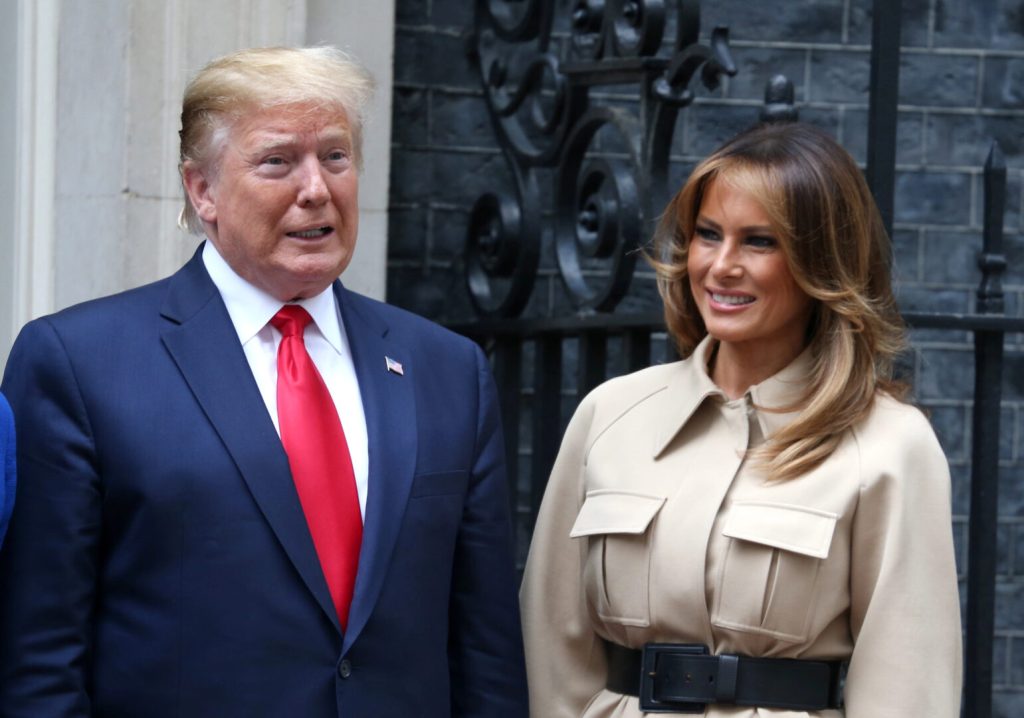 Зад парот, кој е во брак од 2005 година и има 19-годишен син, Барон, се наоѓаат официјалниот претседателски печат, американското знаме и знаме со голем орел. Тие се опкружени и со низа совршено украсени елки.