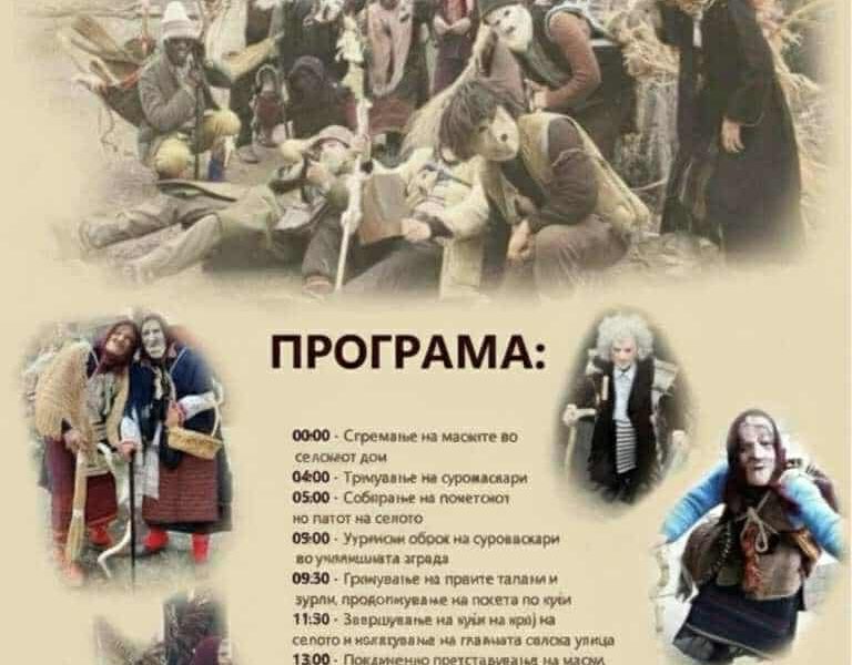 - 13:00 часот – Поклонување и претставување на маски, дефиле на суроваскари пред селскиот дом