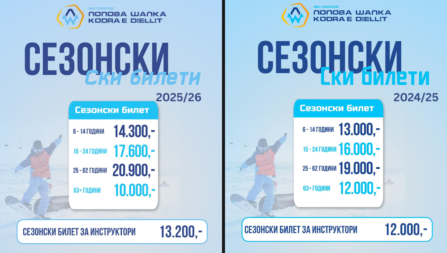 Само кај возрасната група над 63 години има наламување на цената од две илјади денари. Од Ски центарот соопштија дека доколку нудат вкупно 25 дена скијање во текот на сезоната, тогаш годишните билети нема да важат за следната сезона.
