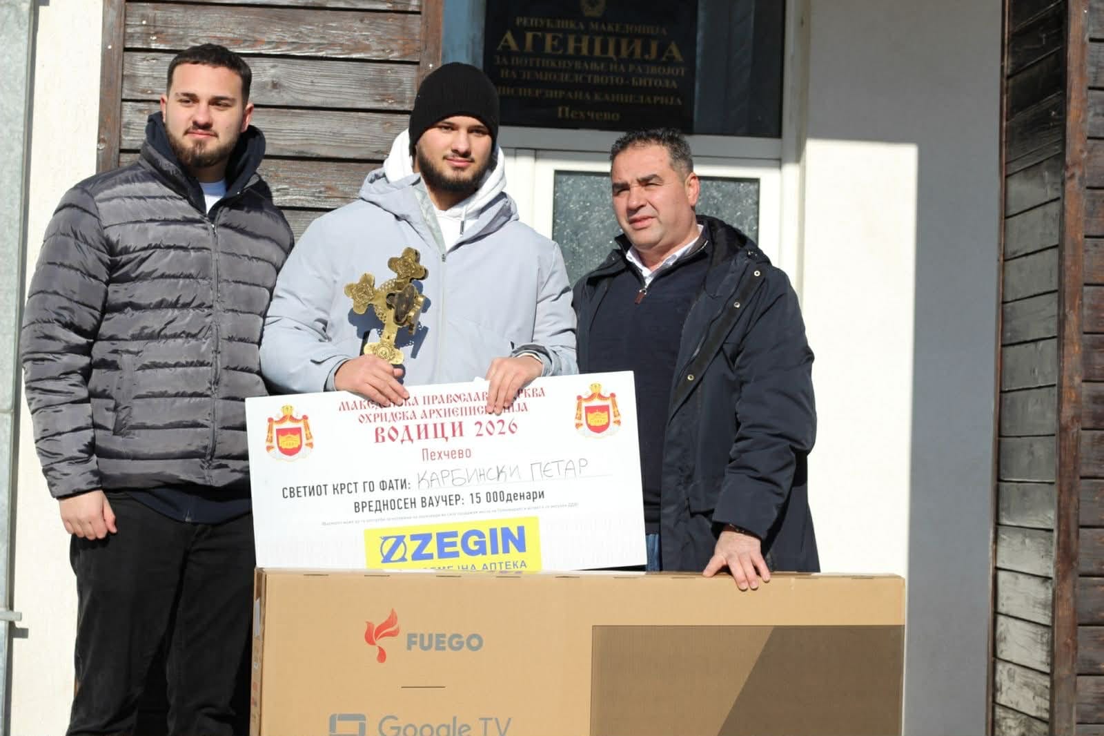 На големата церемонија претходеше и водосвет во црквата ,, Св. Петар и Павле ’’ каде голем број верници беа присутни на Свечената Богојавленска литургија. Отец Горан и отец Љупчо му посака успех, среќа и благодет на најсреќниот на овогодинешните Водици, Петар, како и на сите граѓани на Пехчево. Во нивната порака се повика на љубов, меѓусебна толеранција и почитување, во име на Светиот дух на Господ Бог кој според православното христијанство на овој светол ден му се јави на човештвото, за прочистување на неговото тело и дух, во водите на Јордан.