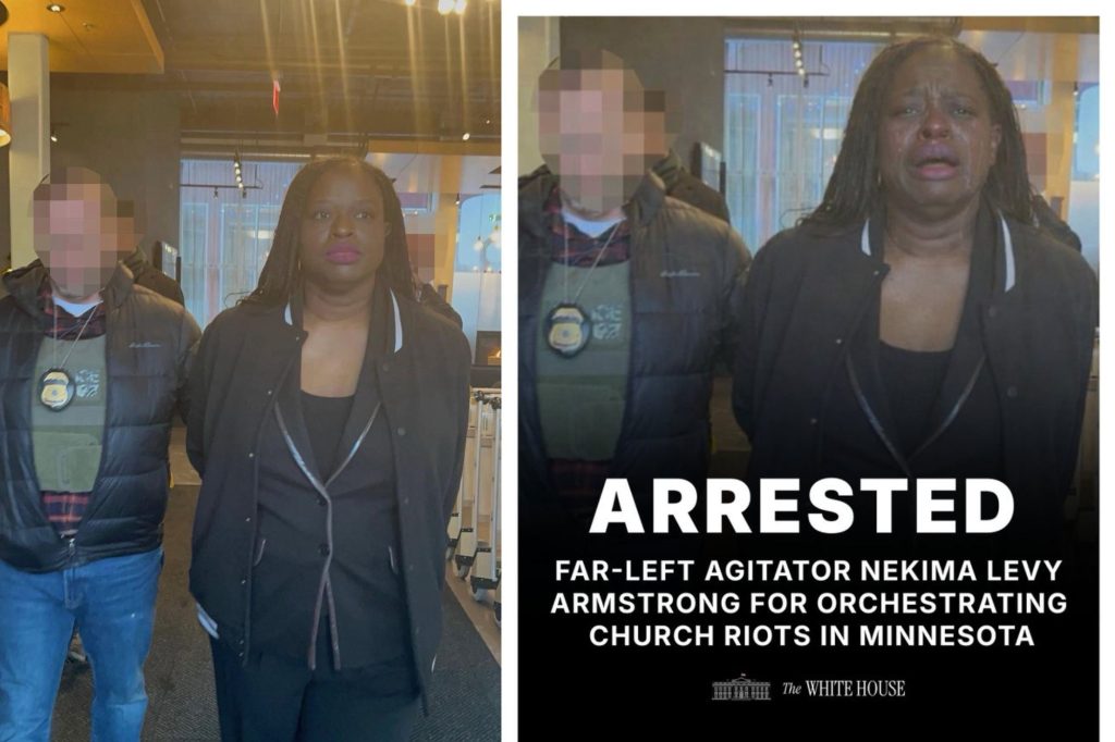 Жената на фотографијата, Некима Леви Армстронг, била уапсена поради наводно организирање протест што ја нарушил црковната служба во Минесота.