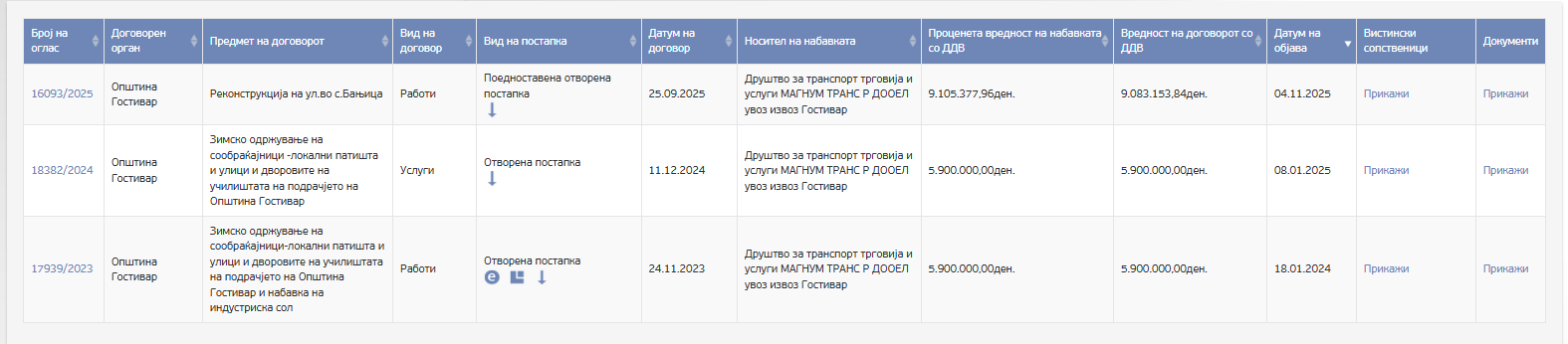 • Магум Транс (Гостивар): Добила тендер во вредност од 4.270.000 денари. Оваа