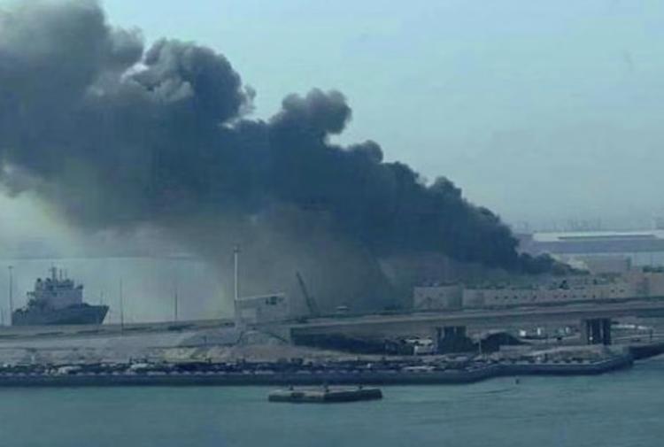 Колони од црн чад се издигаа над пристаништето во Абу Даби по напад со два ирански беспилотни летала врз поморската база Ал Салам. Експлозијата погодила магацин и предизвикала пожар на два контејнери.