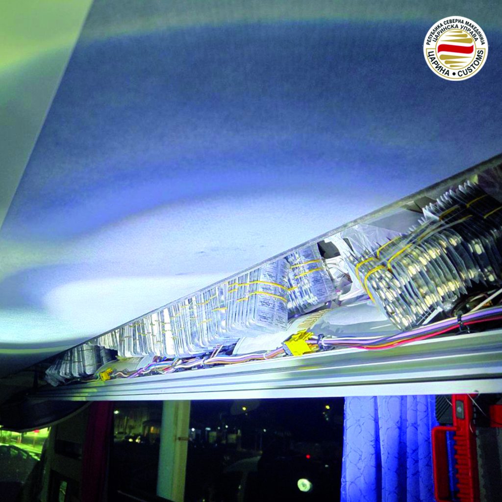 Вкупно 16.051 парчиња непријавени лекови, со вредност од 1,6 милиони денари, биле пронајдени при контрола на автобус кој е стопиран во внатрешноста на државата од страна на мобилен царински тим и тим од службата за скенирање при Одделението за оперативни работи во рамки на Секторот за контрола и истраги. Станува збор за автобус во сопственост на туристичка агенција од Косово, кој сообраќал на релација Турција – Косово, во кој при детална контрола се пронајдени вкупно 623 вијали Prolutex (за хормонска терапија и за поддршка на бременост), 15 илјади таблети Jardiance (за лекување дијабет), како и 428 парчиња раствори за инјекции што се користат за визуелизација при магнетна резонанца – 61 вијала Clariscan, 355 вијали Gadovist и 12 вијали Genburto. Дел од нив, 428 вијали, се откриени при првична контрола во црна најлонска ќеса скриена позади седиштата, по што автобусот е спроведен до царински терминал за детална контрола, по што во фабричките шуплини на вентилацијата се пронајдени преостанатите 15.623 парчиња лекови. Против двајца осомничени од страна на Одделението за истраги е поднесена кривична пријава за сторено кривично дело криумчарење, а лековите се трајно одземени.