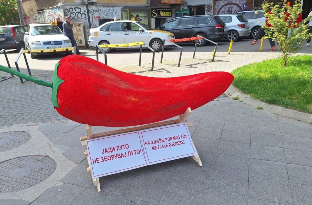 Станува збор за реалистична скулптура на лута пиперка со димензии 2м x 60см x 70см, која преку пораката „Јади луто, не зборувај луто“ на сликовит и духовит начин ја пренесува идејата за одговорна и внимателна комуникација.