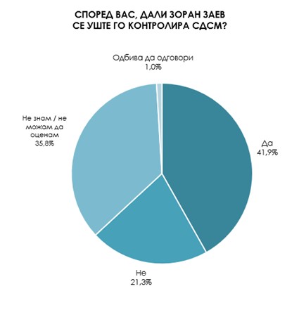 Во однос на случувањата во СДСМ, ова истражување покажува дека граѓаните сметаат дека претходниот претседател на СДСМ и премиер Зоран Заев сѐ уште ги контролира работите во партијата (42%). Неговата блискост со актуелниот претседател на социјалдемократите Венко Филипче очигледно е дека само го поткрепува верувањето дека Заев и натаму ги влече конците во партијата.