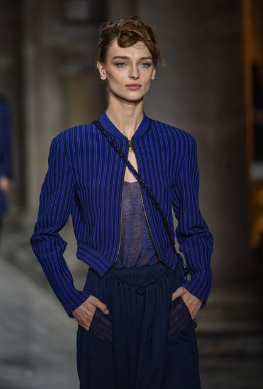 Колекцијата, со палета на бои што се движеше од сива до темно сина и темно зелена, беше насловена „Pantelleria, Milano“, осврнувајќи се на две места драги на дизајнерот, соопшти агенцијата.
