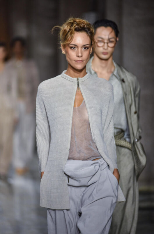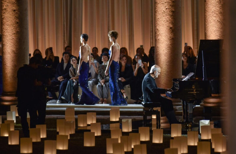 Моделите прошетаа во флуидни, лесни облеки, придружени со жива пијано музика изведена од италијанскиот композитор Лудовико Еинауди, објави Ројтерс.