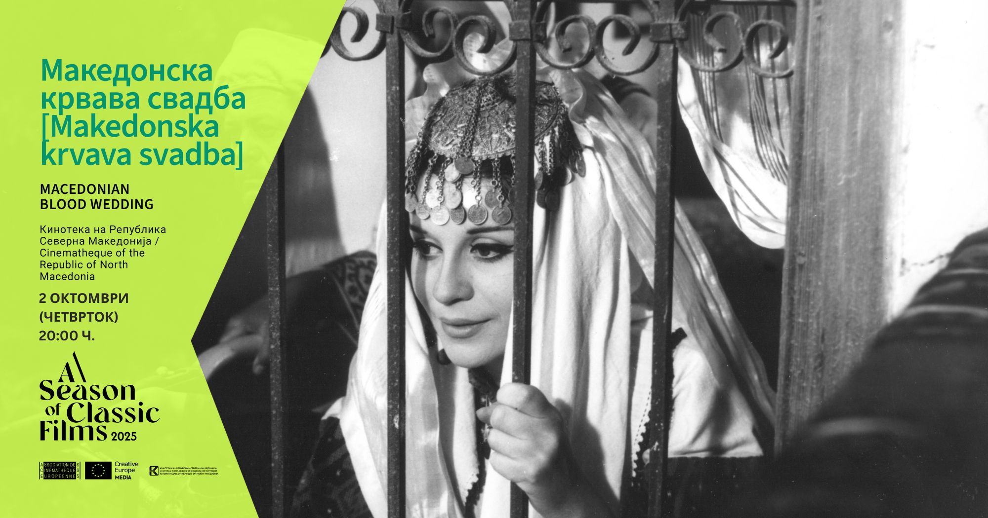 Oваа година, на 2 октомври, со почеток во со почеток во 20:00 часот – во киносалата на Кинотеката ќе се одржи специјална проекција на дигитално реставрираниот филм „Македонска крвава свадба“ (1967, режија:Трајче Попов), како дел од проектот „Сезона на филмски класици“.