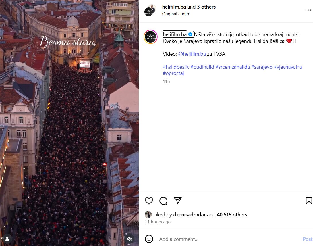 Меѓу многуте градови што се збогуваа со музичката легенда Халид Бешлиќ во саботата беше и Париз. Обожавателите се собраа пред Ајфеловата кула со знамиња на Босна и Херцеговина за да му оддадат почит на пејачот, а емотивното видео го сподели актерот Енис Бешлагиќ, кој ја започна иницијативата за збогувања низ целиот свет.