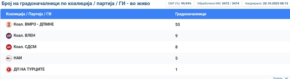 The post Уште во првиот круг во 32 општини победија кандидатите за градоначалник на ВМРО-ДПМНЕ appeared first on МКД.МК.