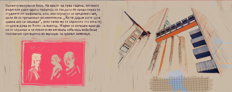 Цртежите, во заедништво со расказите, се тажен, траги-комичен коментар на радикалните нееднаквости во општеството, економската и социјалната несигурност, прекарното живеење, секојдневните борби на луѓето од маргините, но и на начинот на кој се однесуваме кон животните, деградацијата на природата и еколошките катастрофи, последици на нејзината политичка и економска инструментализација. Тие се оживување на личните приказни на оние со кои секојдневно се среќаваме, но најчесто не ги забележуваме. Безимениот бездомник што умира на улица никогаш нема да се појави меѓу „топ сториите“ на пребарувачите или вечерните вести, исто како и квир осамените, политички изманипулираните, прекаријатните работници, заглавените во постојана транзиција, невидливите во мејнстрим-кадарот, оние чии гласови не допираат до политичката елита, оние кои се исклучени од донесување одлуки, оние кои се наоѓаат вон доменот на правната и граѓанската политика, оние кои преживуваат. Сите овие слики заедно го одразуваат мноштвото начини на кои маргините се создаваат, оспоруваат и трансформираат.