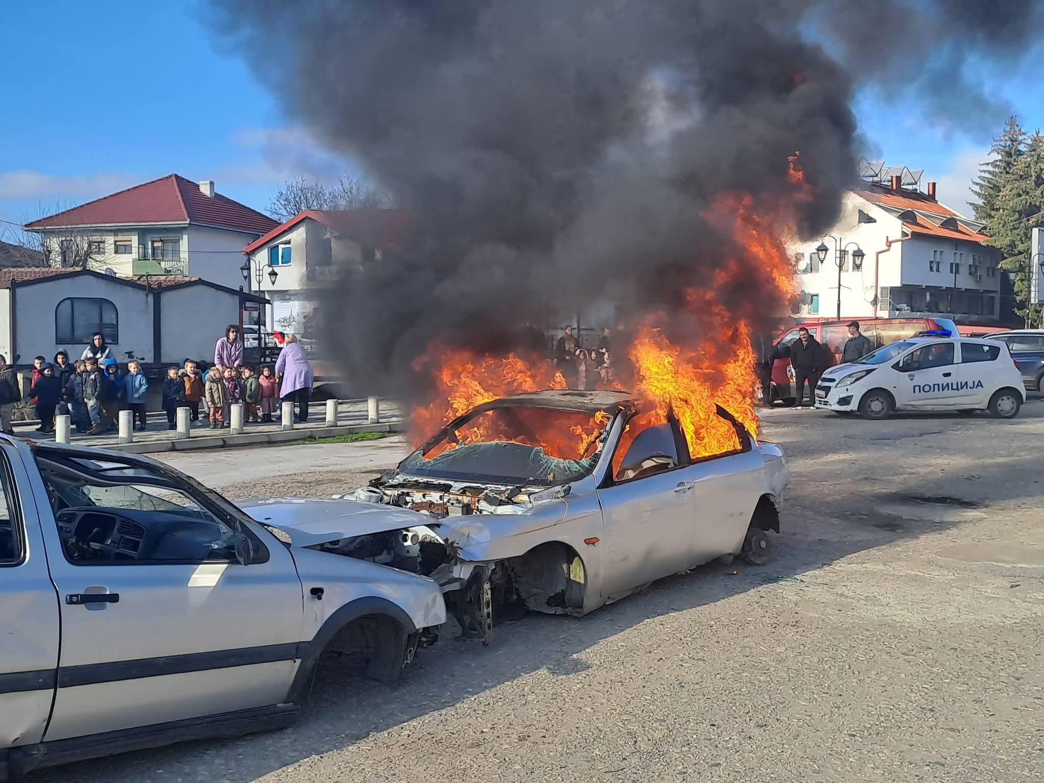 Денес, 09.12.2025 година, на паркингот кај поранешната Автобуска станица во Берово, полициските службеници од ПО за БПС и ПС од ОН Берово, во содејство со Здравствен дом Берово, ТППЕ Берово, ДПД Пехчево и Црвен крст Берово, спроведоа показна вежба за постапување при сообраќајна незгода.
